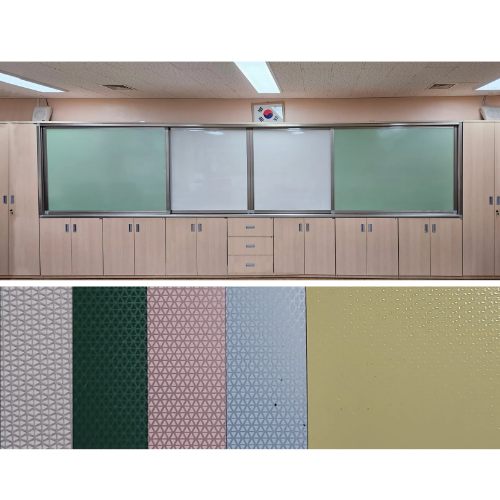 패턴 TV삽입형 칠판(86인치) 법랑 1340*6000mm/색상선택/보조칠판4개1,540,000원 -
