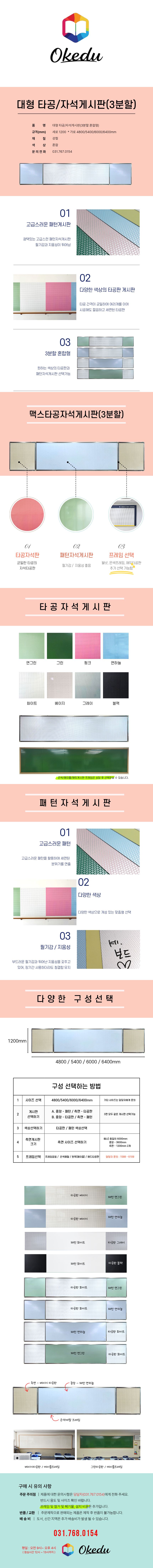 대형 타공/자석게시판(3분할) 5400 * 1200mm*15T 색상선택
